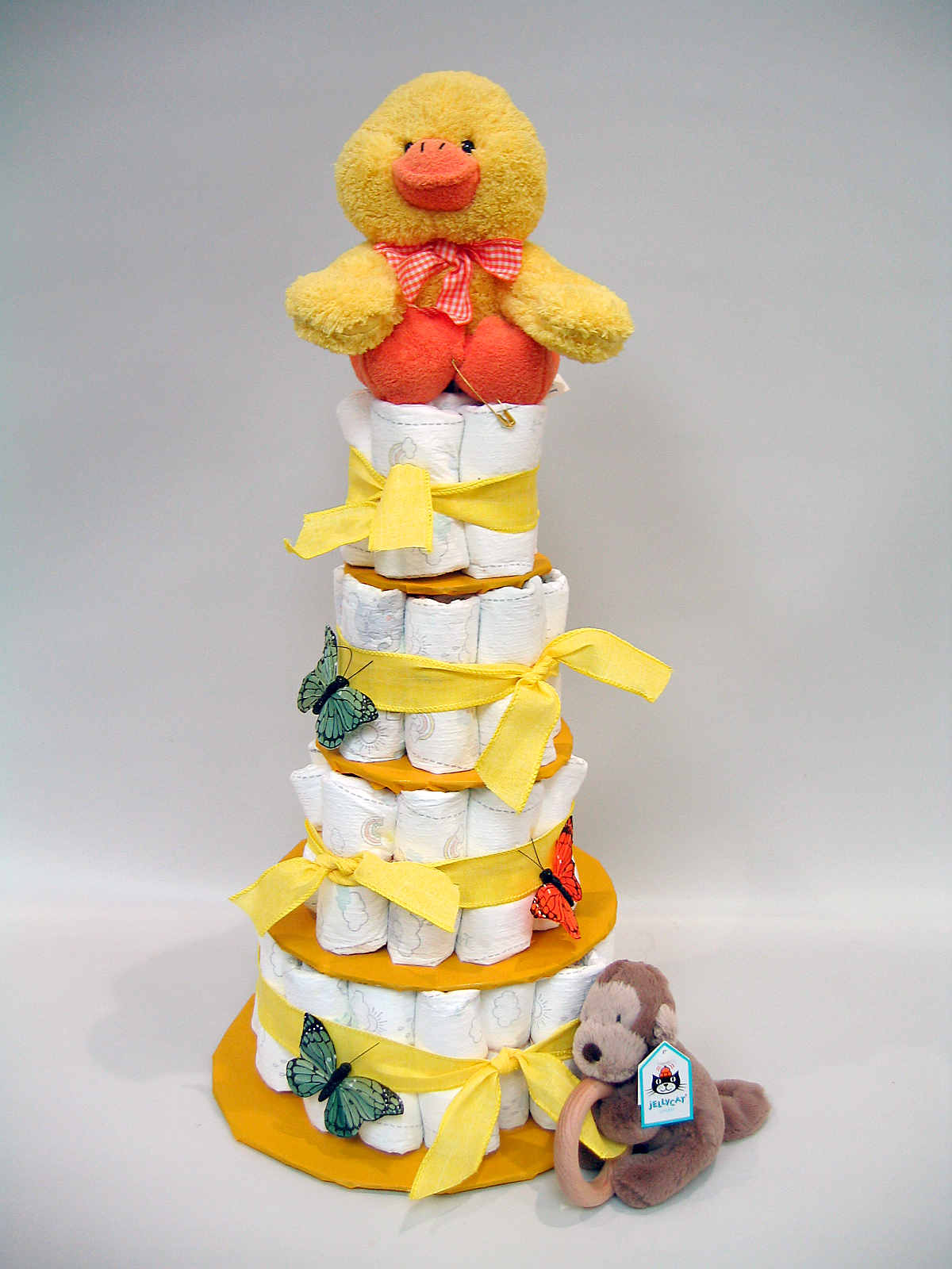 Ce cadeau est parfait pour le shower de bébé ! Avec ses couches,son toutou canard et un hochet singe.